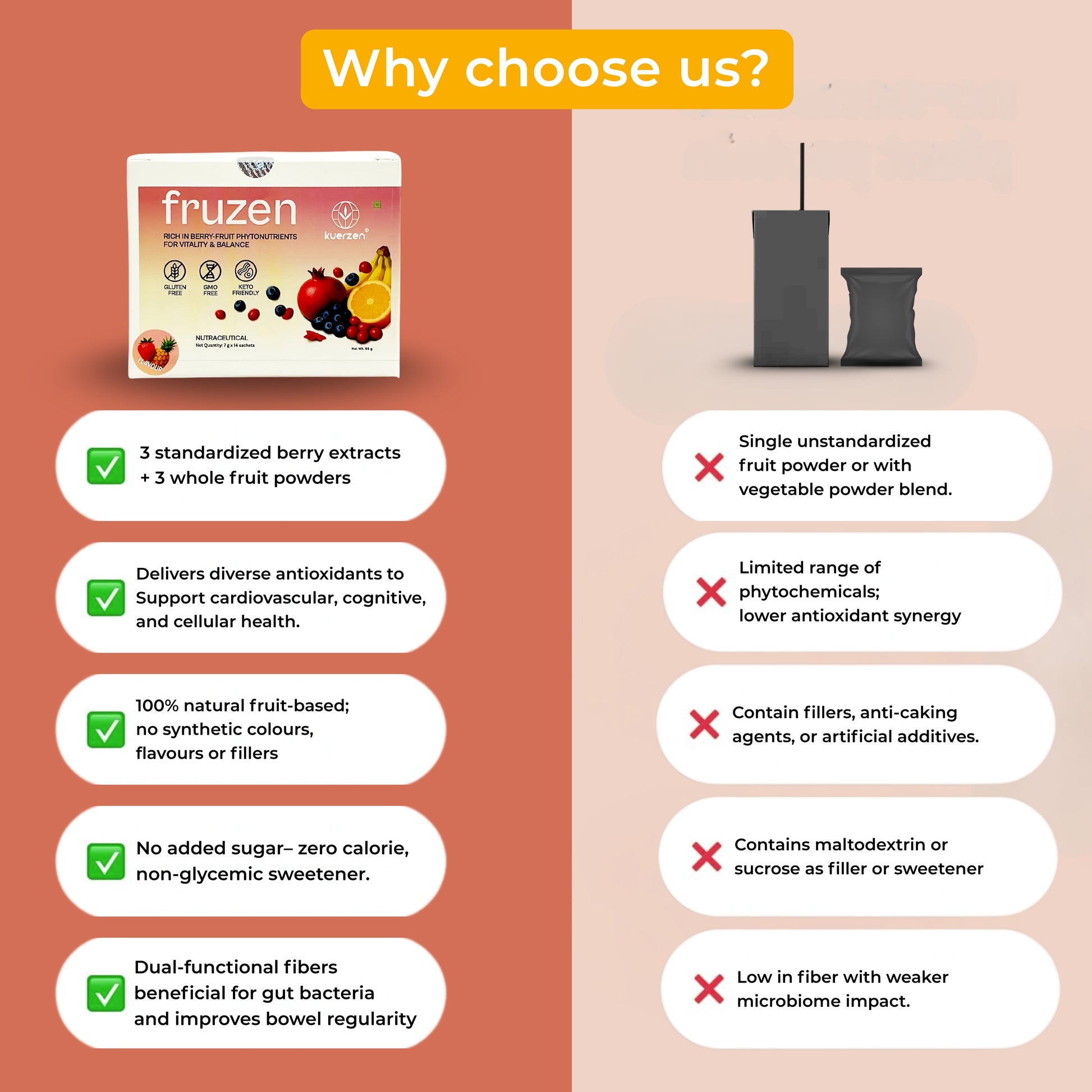 FruZen combines six clinically studied ingredients at bioactive doses proven in peer-reviewed research: